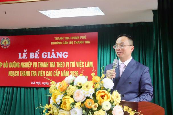 Ngày 3/3, tại Hà Nội, Trường Cán bộ Thanh tra đã tổ chức Lễ khai giảng Lớp bồi dưỡng nghiệp vụ Thanh tra viên cao cấp năm 2026. Phó Tổng Thanh tra Chính phủ Lê Tiến Đạt dự và phát biểu chỉ đạo khóa học.