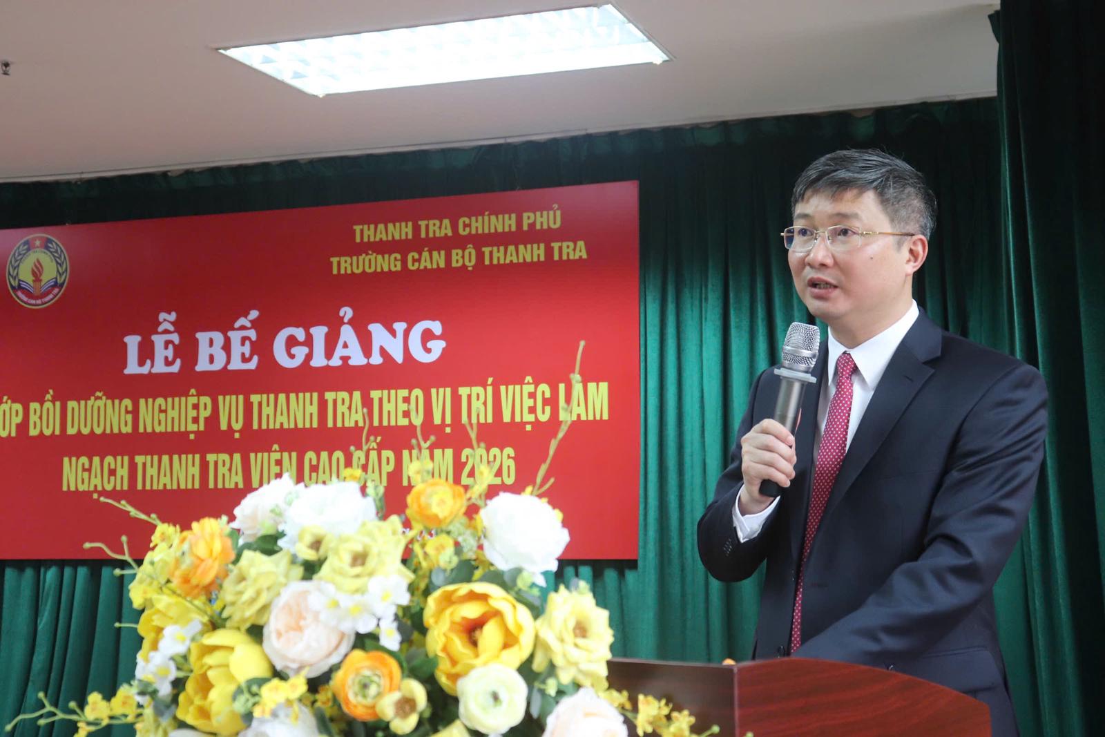 Thay mặt toàn thể học viên, ông Lê Văn Cường, Chánh Thanh tra tỉnh Ninh Bình, Lớp trưởng lớp bồi dưỡng nghiệp vụ thanh tra viên cao cấp năm 2026 bày tỏ sự trân trọng và cảm ơn đối với sự quan tâm, chỉ đạo của lãnh đạo Thanh tra Chính phủ và Ban Giám hiệu Trường Cán bộ Thanh tra.