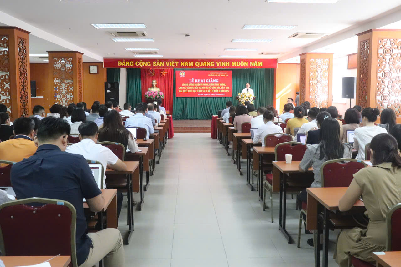 Ngày 21/10, tại Hà Nội, Trường Cán bộ Thanh tra đã tổ chức Lễ khai giảng lớp bồi dưỡng nghiệp vụ đầu tiên về phòng, chống tham nhũng, lãng phí, tiêu cực; kiểm tra nội bộ; tiếp công dân, xử lý đơn, giải quyết khiếu nại, tố cáo tại cơ sở y tế khóa 1 năm 2025.